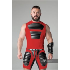 MASKULO - Men's Fetish Top Spandex Shoulder Lacing Red