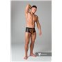 Maskulo presents the new set of fetish underwear! Regular rear trunks with brand new mesh codpiece made of 2 layers of mesh: an upper layer of 3D mesh creates attractive shape, an inner layer of thin colored mesh is soft and breathable keeping men's body parts in comfort. Shiny black leather-looking spandex draws attention expanding your masculinity around. Combine with the harnesses, masks, and armbands to get a complete look. Perfect for male striptease or exotic dance performance.